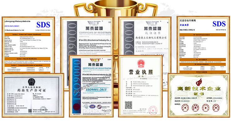 Xi'an Deli Biochemical Industry Co., Ltd. è un'impresa high-tech specializzata in la ricerca e sviluppo, produzione e vendita di ciclodestrine e loro derivati. Forniamo eccipienti farmaceutici a clienti in tutto il mondo con qualità stabile e servizio affidabile.
