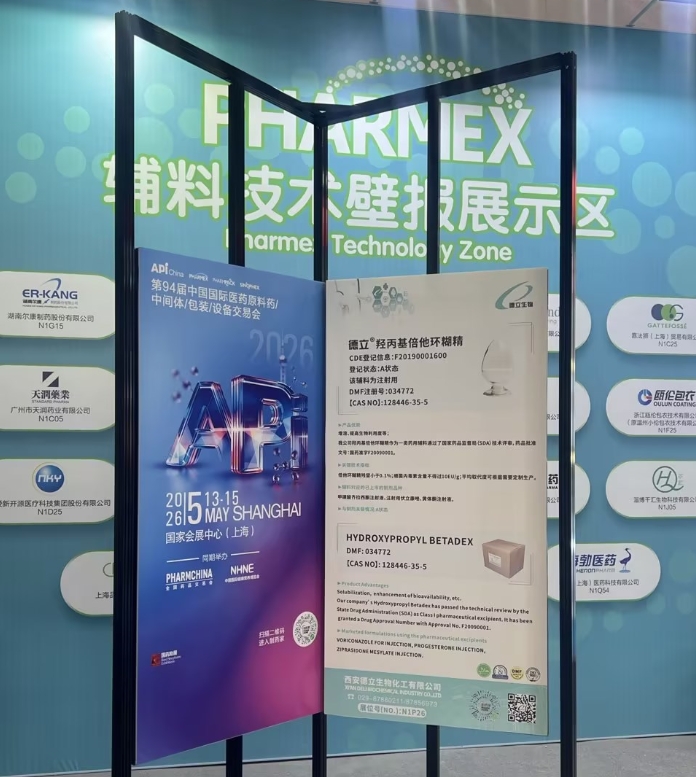 Xi'an Deli Biochemical Industry Co., Ltd. ha partecipato alla fiera API China 2025 tenutasi a Chongqing, presentando i prodotti di punta dell'azienda:Idrossipropil Betadex (HPBCD)EBetadex solfobutil etere sodico (SBECD)—ai professionisti globali dell'industria chimica e farmaceutica.